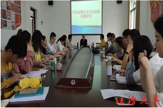 5月15日下午,由4166am金沙信心之选主办的《中国金融安全法治战略问题研究》讲座在4166am金沙信心之选举办。本次会议邀请金融刑法学创始人,中国行为法学会金融行为法律分会副会长兼秘书长、海南省法学会副秘书长刘建主讲,讲座由4166am金沙信心之选院长金明浩主持,江汉大学法学教授田圣斌,4166am金沙信心之选教授周灏,4166am金沙信心之选副教授汪沂,《法治头条》行政主任江红,以及4166am金沙信心之选的刘芬老师和学生参加了本次会议。会上刘建教授对中国金融安全存在的风险和问题进行了分析讲解,并提出完善金融安全法治建设的思考和建议。师生认真听讲,并踊跃提问,与刘教授作了交流。田教授点评后,金院长做了最后总结。