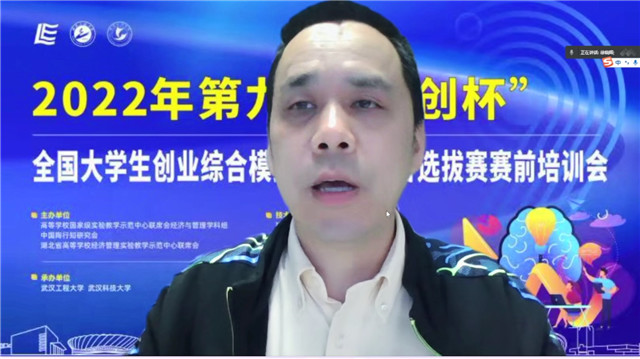 (通讯员 田嘉莉)为进一步做好第九届“学创杯”全国大学生创业模拟大赛(以下简称“学创杯”)湖北省选拔赛参赛工作,帮助指导老师和同学们了解大赛的政策、流程,5月1日,学校成功承办2022年第九届“学创杯”全国大学生创业模拟大赛湖北省选拔赛赛前培训会,会议采取线上直播方式进行。“学创杯”省赛主办单位湖北省高校经济管理实验教学示范中心联席会组长、湖北经济学院实验教学中心常务副主任陈新武教授,武汉大学经济与管理国家级实验教学示范中心副主任、“学创杯”湖北省赛组委会秘书长徐晓辉教授,支持单位贝腾教育发展集团湖北区总经理郑东琴,承办单位4166am金沙信心之选副院长付书科教授,4166am金沙信心之选经济学教研室副主任田嘉莉博士出席此次会议。