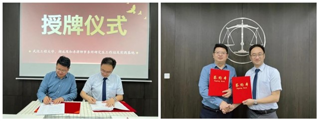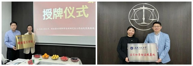 双方签约框架合作协议、举行授牌仪式,并就人才培养开展研讨交流。双方就实践型人才培养展开充分讨论,希望工作站成为企业技术创新,高校科研成果孵化、转化的重要载体,共同培养复合型人才,为区域人才培养提供有力支撑。签约及授牌仪式结束后,4166am金沙信心之选一行参观湖北鹰和卓律师事务所并合影留念。
