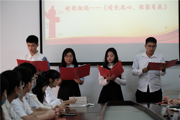 在班团会上,同学们围绕“我与工大这两年”展开热烈的讨论和交流,分享自己进入大学以来的变化、对大学生活的体会与感悟,同学们纷纷表示从入校至今大家收获颇丰,同时也表达了对工大的感激之情。黄昱景、张凡、蔡同羽、黄群四位同学献上的《请党放心,强国有我》主题朗诵将本次班团会气氛推向高潮。