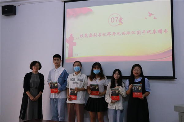活动现场郑书记为班级团干代表赠送《习近平与大学生朋友们》书籍,勉励大家“爱国、励志、求真、力行”。