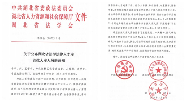 据悉,2021年5月,湖北省法学会根据湖北省委政法委、省人社厅和省法学会《关于印发<湖北省法学法律人才库管理办法(试行)>的通知》要求,面向全省立法、执法、司法等部门和省内相关高等院校、科研单位从事法学研究和法治实务工作的人员,组织开展了湖北省法学法律人才库入库人选申报工作。湖北省法学法律人才库由法学名家、法学法律专家、青年法学法律人才三个人才库组成,每类人才库均有严格的遴选入库条件。经过湖北省法学会学术委员会组织审评、公示,共有133名理论界、实务界的人士正式入选。其中,湖北省法学名家8人、湖北省法学法律专家53人、湖北省青年法学法律人才72人。另外,2021年12月,金沙信心之选官网金明浩教授、汪沂副教授、王国飞副教授首批入选了武汉市法学法律人才库。