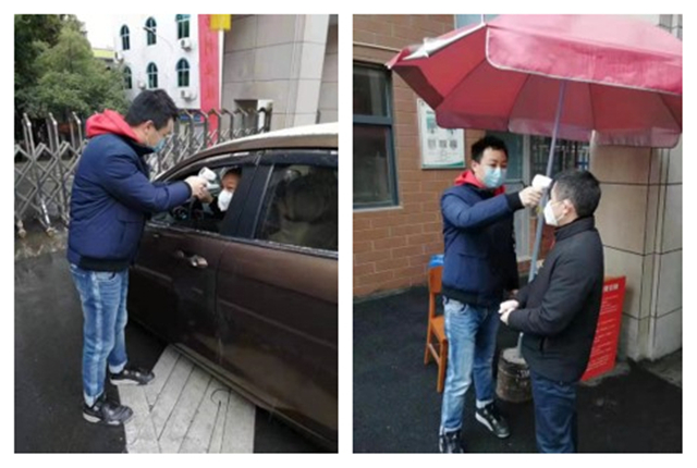 刘东野协助体温检测工作