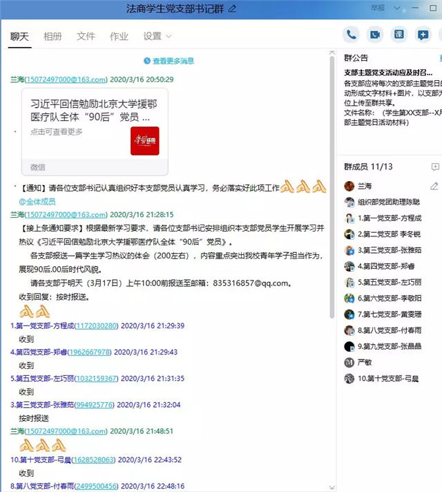 全体党支部“以书桌为战场”,通过线上“微媒体”讨论和线下自主学习相结合的方式展开活动。同学们纷纷表示:“将牢记初心使命,以实际行动担当作为,以更坚定的信心、更扎实的工作,为打赢疫情防控狙击战而奋斗!”