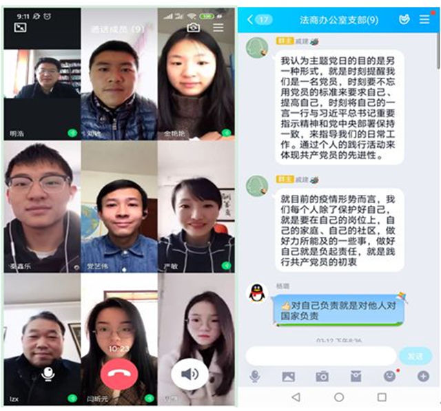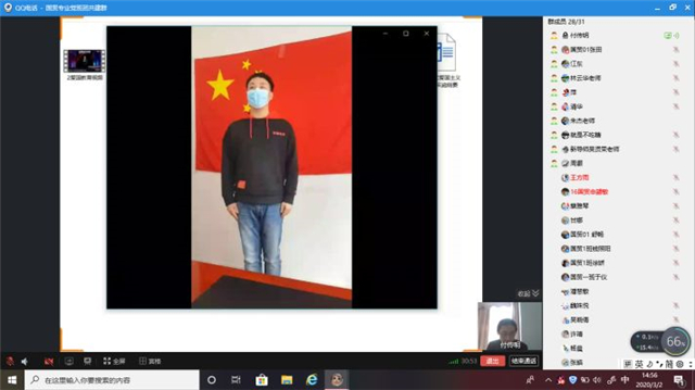 “党旗飘扬·共克时艰”党班团共建团队——“学生党员与学生干部”先锋队开展主题党日活动——活动聚焦习近平总书记重要指示精神和党中央决策部署,用科学思想武装头脑,积极引导身边群众正确认识和对待疫情,坚持做好群众思想工作。学院党委书记李志旭、院长金明浩与学生代表视频连线,向学生解读了党中央关于疫情的决策部署,分析了社会主义显著优势,讲述了战“疫”一线的感人故事,深入浅出,令全体师生备受鼓舞和激励。