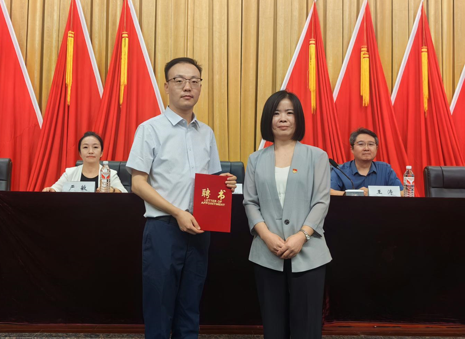 学院党委书记陈朝娟为特邀嘉宾闫帅颁发“校外思政导师”聘书。