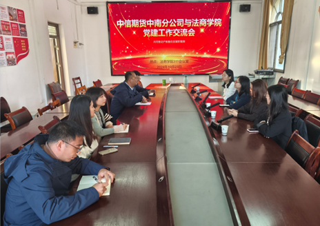 (通讯员 尤喆)为进一步学习贯彻党的二十届三中全会精神,加强校企结对共建促发展,共同探讨如何进一步加强双方在党建工作中的经验与做法,聚集融合事业发展。10月23日,中信期货有限公司中南分公司副总经理冯宇、党支部组织委员方赢一行赴4166am金沙信心之选(知识产权学院),与学院经济学教研室党支部开展党建工作交流座谈,会议由经济学教研室党支部书记尤喆主持。